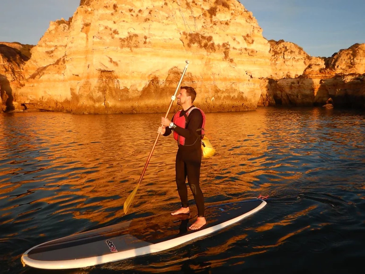 - Praia da Dona Ana in Lagos is where we’ll meet and after getting equipped with a wetsuit, life vest, paddle, and SUP board, we’ll make a brief SUP lesson on the sand, so that you can fully enjoy this activity in safety on the water.